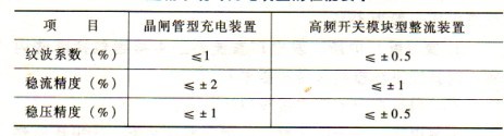 表2-1 直流系統對充電裝置的性能要求